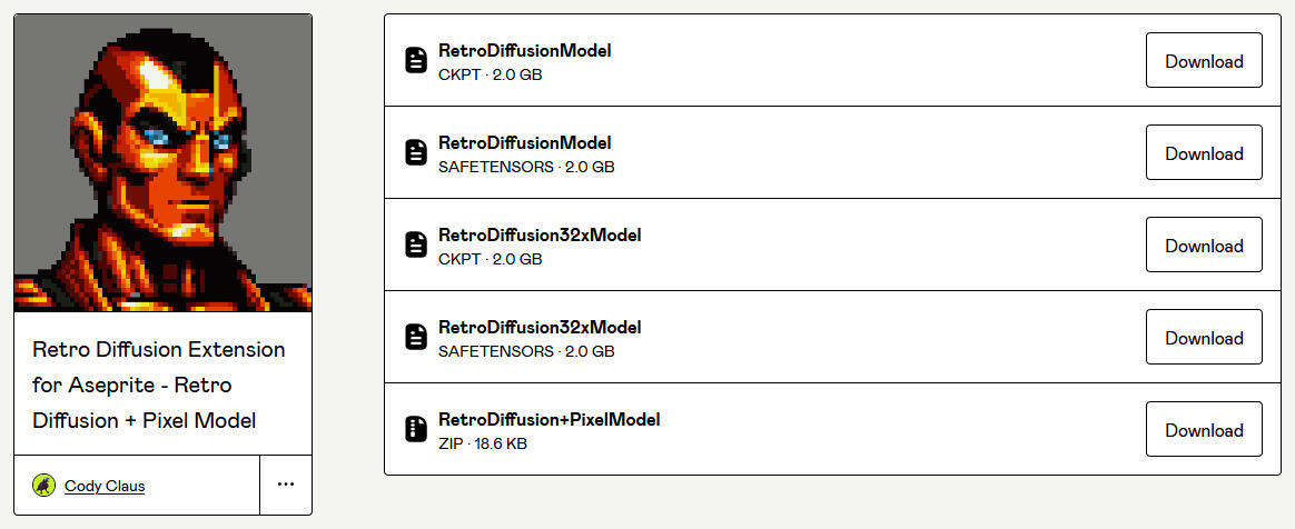 I've also created two standard model files that can be used with most Stable Diffusion based AI tools. The quality on these models is slightly lower than inside Retro Diffusion, but this should allow you to generate pixel art through Google Colab notebooks, Automatic1111 webui, InvokeAI, and many other tools.