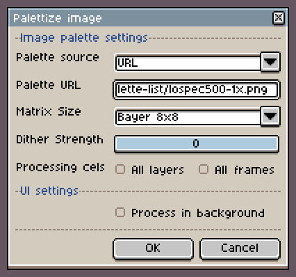 It is already better, but I want to palettize it to a palette of my choice: "Lospec500."In this case, you can load the palette of your choice to the palettizer from a URL. See below: